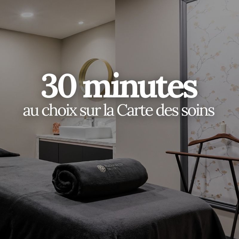 30 minutes complètes à utiliser au choix parmi tous nos soins d’une durée possible de 30 minutes.