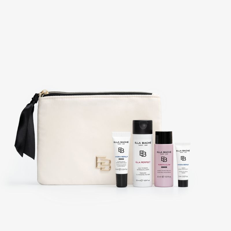 Retrouvez dans cette trousse une sélection de produits incontournables au format voyage :